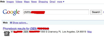 When I googled the (323) number, I came up with a name and an address.The address was the same location that I had tracked the phone to on Monday night. This is where he slept that night. Notice the