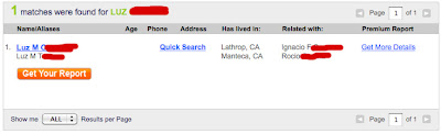 I googled the number and got nothing. Then I tried ussearch.com. For $10, I got Luz's full name and three other names associated with the phone number. Then I ran the names in the White Pages and got an address. I googled the address and got a streetview of the house. There is a white Ford Explorer parked out front of the house. Now I know what they drive. Muh huah hah hah ha ha hah hah hahhhh ha haaaaaa